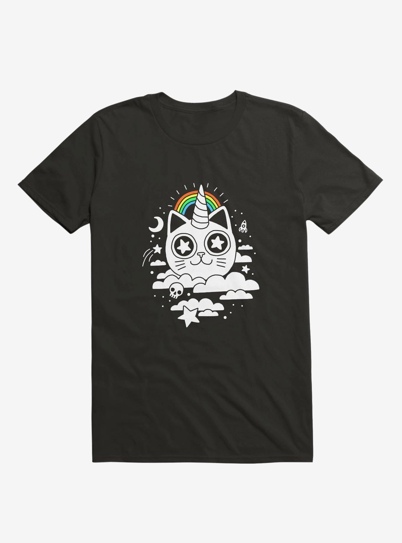 This is your cat on catnip. Any questions? Our lightweight black graphic tee depicts a feline feeling the hallucinogenic affects of the kitty green. Starry eyed? Unicorn horn? Head in the clouds? Yep, this fur baby's had waaaay too much. Officially licensed art from Obinsun.