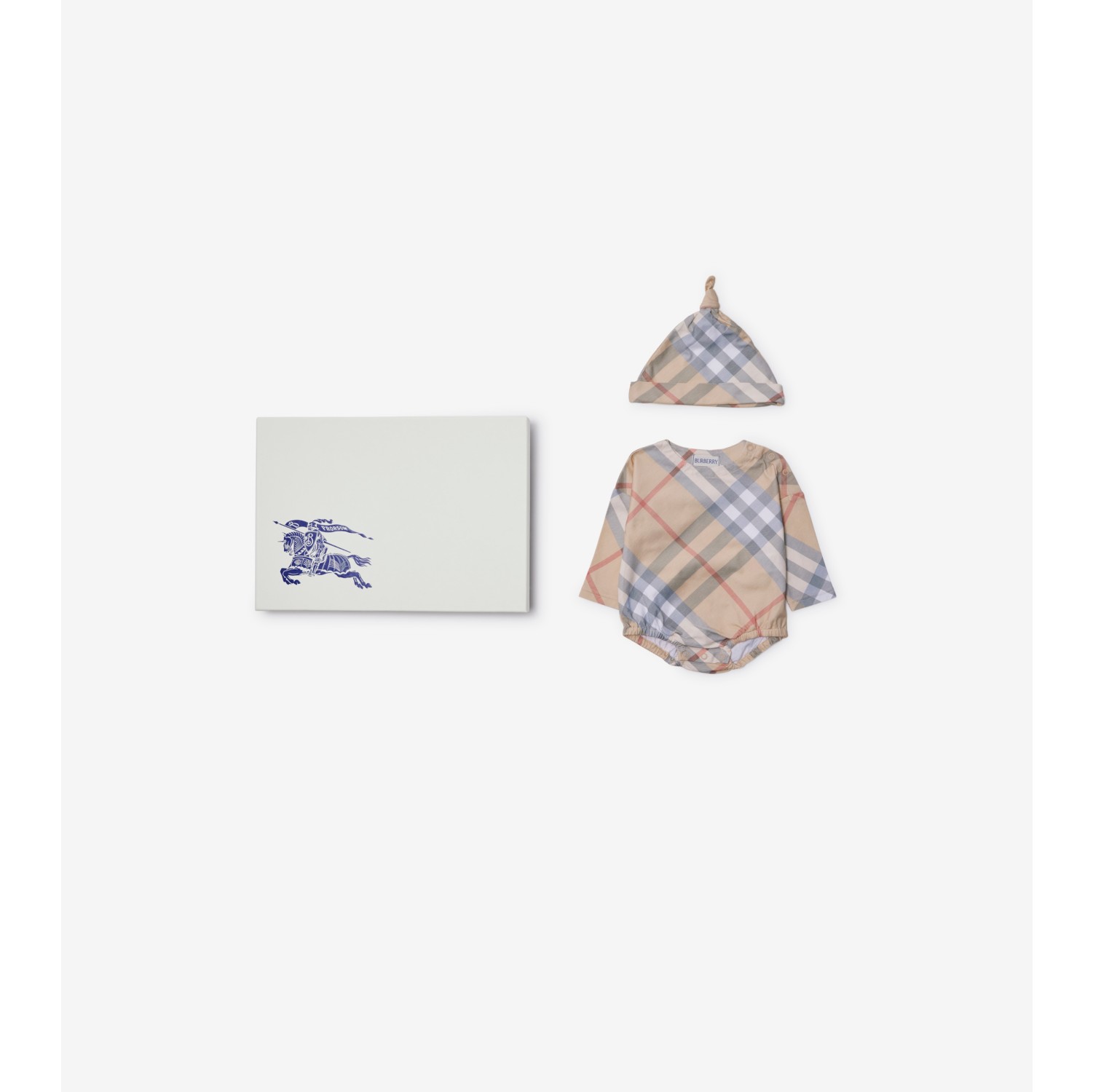 Check Cotton Two-piece Baby Gift Set in Pale stone - Children | Burberry® Official