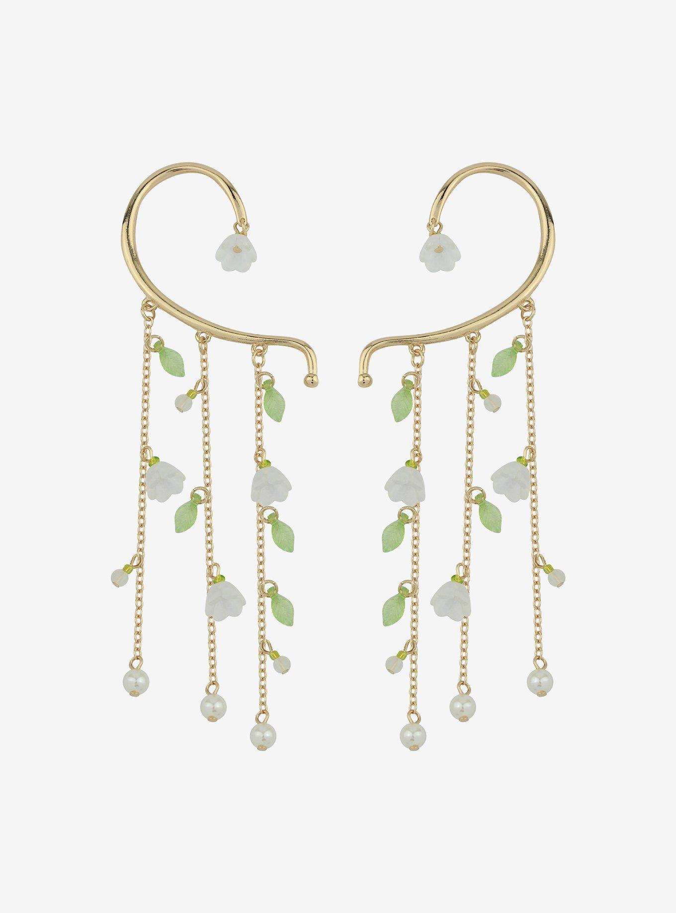 Channel your inner forest fairy with these gold-tone ear cuffs. Featuring chain drops with dreamy flower, leaf and faux pearl charms.
