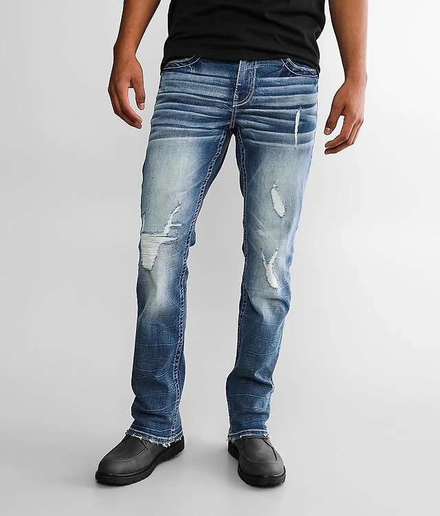 Slim fit jean Superior stretch fabric, our highest level of stretch for ultimate movement Straight from knee to hem Low rise, 16" bottom opening Embroidery on pieced and darted double back pockets Hand sanding, whiskering, grinding, dremmeling, veining, destruction with fill yarn, and denim backing details Zip fly Model Info: Height: 6'1" | Chest: 38" | Waist: 30" | Hip: 39 1/2" | Wearing Size: 32x32