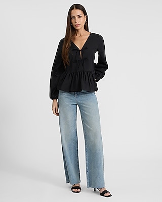 Tie Front Long Sleeve Peplum Top in Bloomington, MN