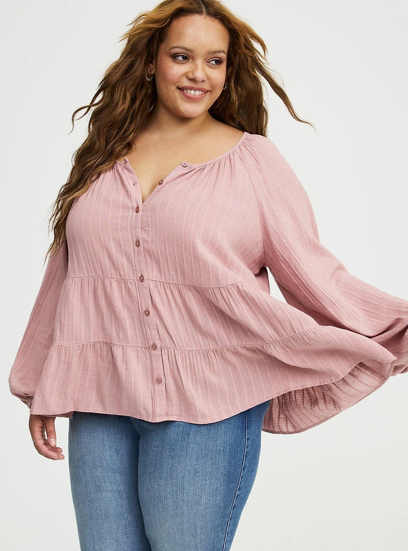 Tiered Button Babydoll Top