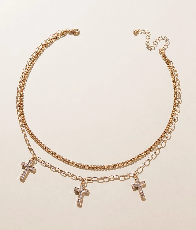 Tiered Glitz Cross Necklace