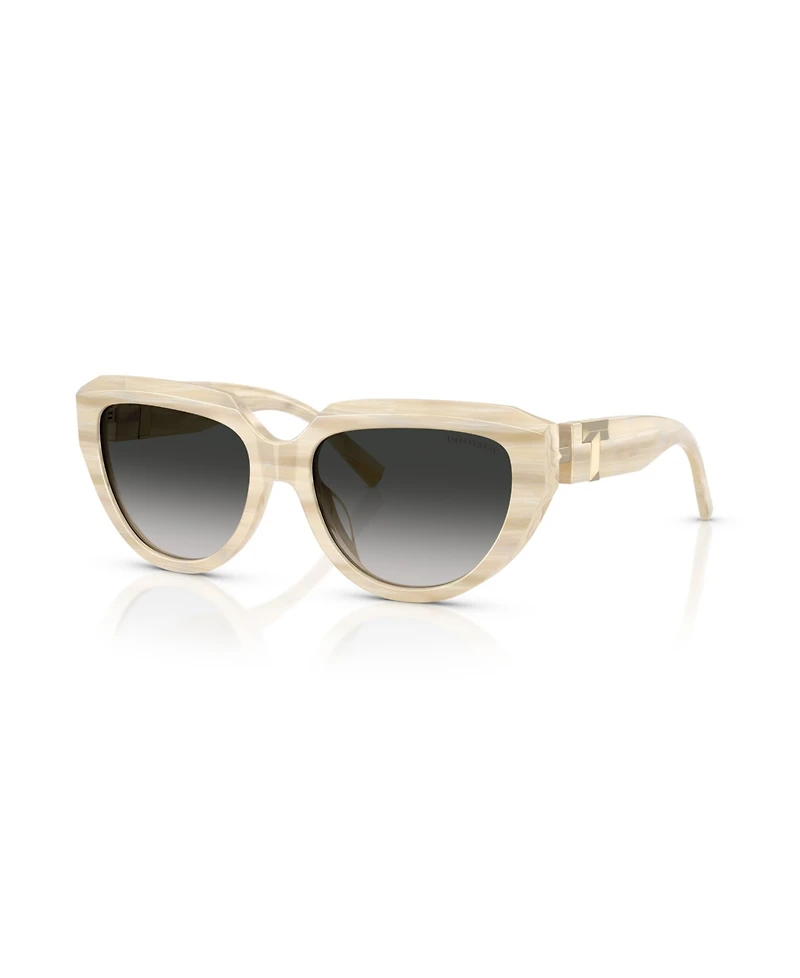 Elevate your style with the Tiffany & Co. TF4238U gradient sunglasses, featuring sleek rectangular frames in beige acetate for a polished aesthetic. The distinctive faceted T motif on the metal temples adds a bold touch of sophistication, paired with a unique hinge design for seamless elegance. Grey gradient lenses enhance the look while providing advanced Uva/Uvb protection. A timeless accessory with modern flair, perfect for structured, effortless sophistication.