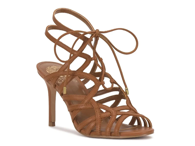 The Tilly sandal from Vince Camuto brings a confident edge to your wardrobe with its lace-up design and slender stiletto heel, perfect for transitioning from day to night. This silhouette’s round open toe and sleek, caged upper create a fashion-forward statement that pairs effortlessly with tailored ensembles.
