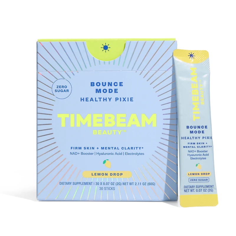 Bounce Mode Healthy Pixie - NAD+ Boostin. Features: Timebeam dev Bounce Mode Healthy Pixie is a daily, melt-on-your-tongue NAD+ boosting supplement formulated to support visibly firmer, bouncier-looking skin while helping sustain energy and mental focus. Each package provides a 30-day supply and has a unit weight of 0.21 lb.. Features: Melt-on-your-tongue lozenge format for convenient daily use. NAD+ boosting support to complement your wellness routine. 30-day supply for one-month use per package.. Benefits: Helps promote skin that looks firmer and more resilient. Supports steady energy throughout the day. Supports mental focus and clarity to help you stay on task.. Use as part of a daily wellness regimen for easy, on-the-go support.. Benefits: SKIN LONGEVITY INGREDIENTS NAD+ Booster - An orally bioavailable NAD+ booster that supports smoother, younger-looking skin from the inside out.*Hyaluronic Acid - A holy grail hydrator that locks in moisture to leave skin visibly plump and glowy.*Electrolytes - An electrically-charged collection of essential minerals that maintains hydration levels.*Vitamin B12 - An essential nutrient known to elevate your mood while enhancing energy levels.* Rhodiola - A time-honored adaptogen revered for managing stress levels.*. Research Results: BEAMING RESULTS* AFTER 2 WEEKS89% agreed skin looked hydrated79% agreed skin felt softer71% agreed energy level improved AFTER 4 WEEKS84% agreed skin looked brighter82% agreed skin looked healthier*Based on self-assessment results of an independent study of 39 people, with daily use..