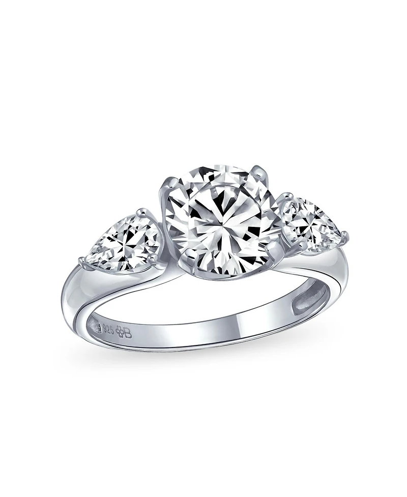 Timeless 3CT Aaa Cz Trillion Side Stones Promise Cubic Zirconia Brilliant Cut Solitaire Round Engagement Ring For Women .925 Sterling Silver