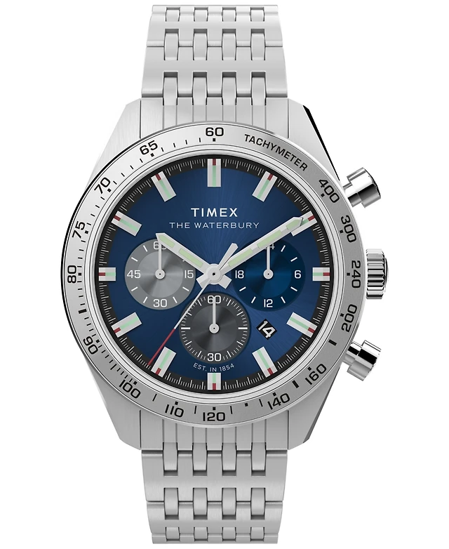 Timex Men's Quartz Analog Silver-Tone Stainless Steel Watch, 41mm
