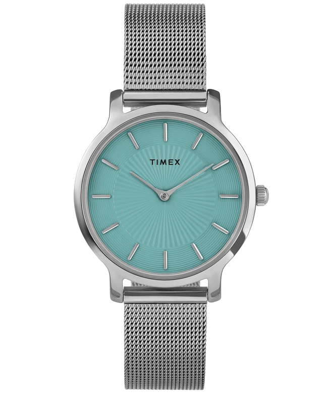 Timex Women's Quartz Analog Silver-Tone Stainless Steel Watch, 34mm