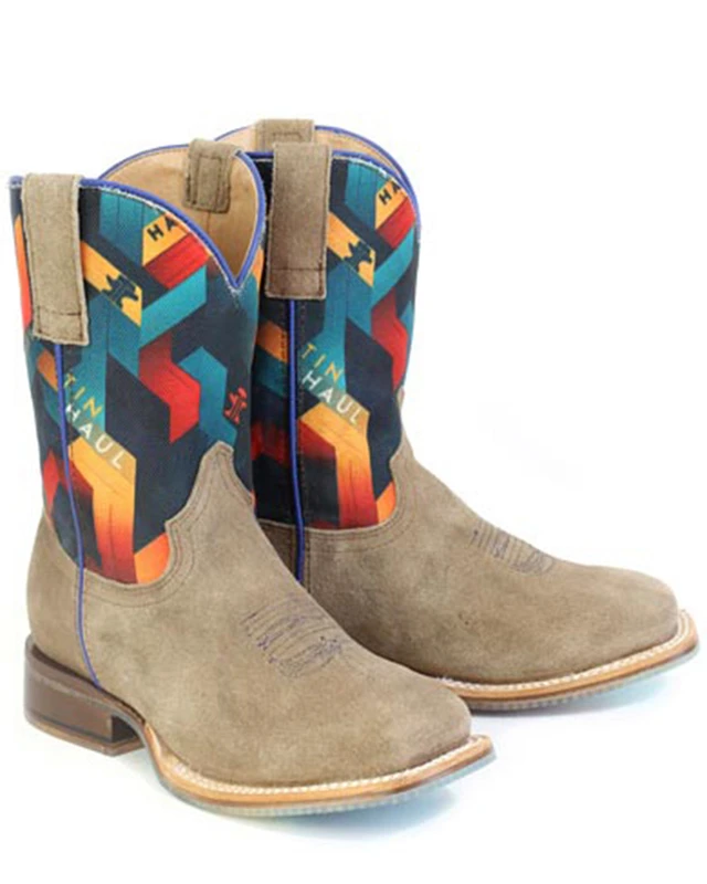 Tin Haul Boys' Check It Out Western Boots - Broad Square Toe