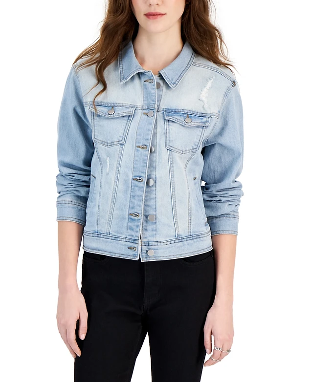 Tinseltown Juniors' Long-Sleeve Denim Trucker Jacket
