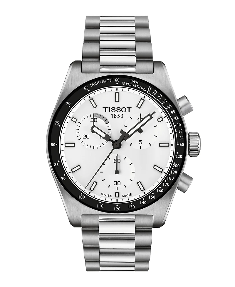 The Tissot PR516 Chronograph Quartz: a contemporary take on a cherished 1970 design. This watch showcases a sleek 40mm stainless-steel case and a dynamic dial, embodying the spirit of speed and precision. Equipped with the Quartz G10.212 Powerdrive movement, it offers unmatched accuracy for the active lifestyle. The bezel features a practical tachymeter, while Super-LumiNova-coated indices ensure visibility in all conditions. Its versatile design is complemented by a domed stainless-steel bracelet with a quick interchangeable system, perfect for transitioning from business meetings to casual outings. The PR516 Chronograph Quartz is a modern classic, blending with Tissot's rich heritage.