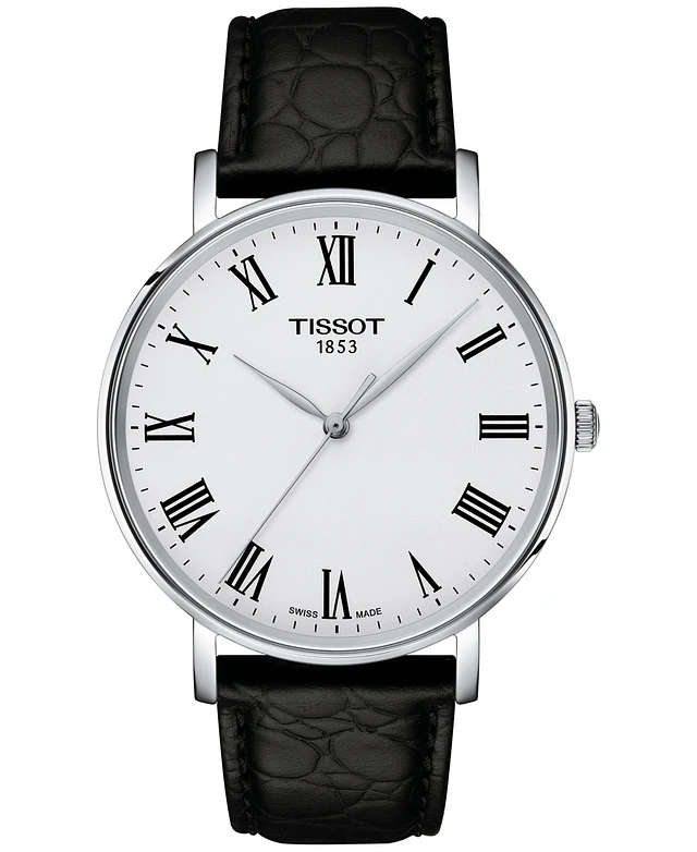 Tissot Men's Swiss Everytime Black Leather Strap Watch 40mm