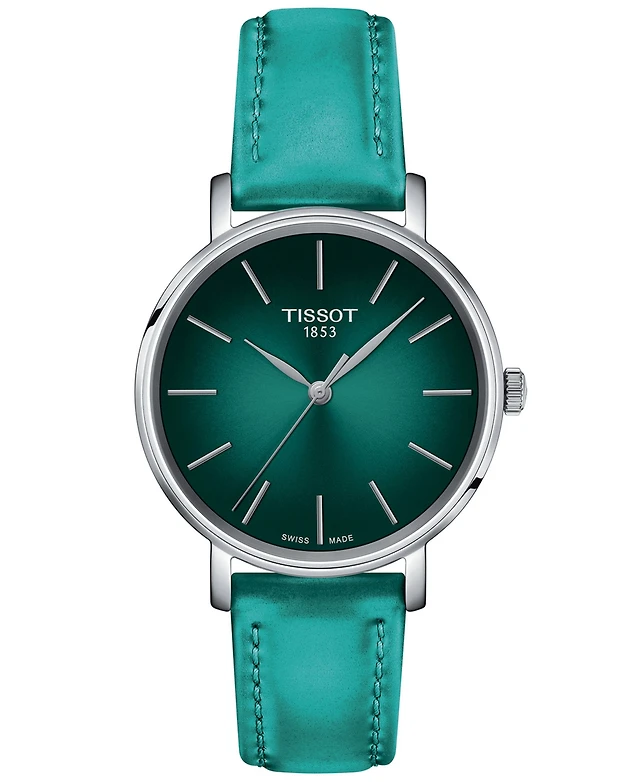 Tissot Women's Swiss Everytime Green Faux Leather Strap Watch 34mm