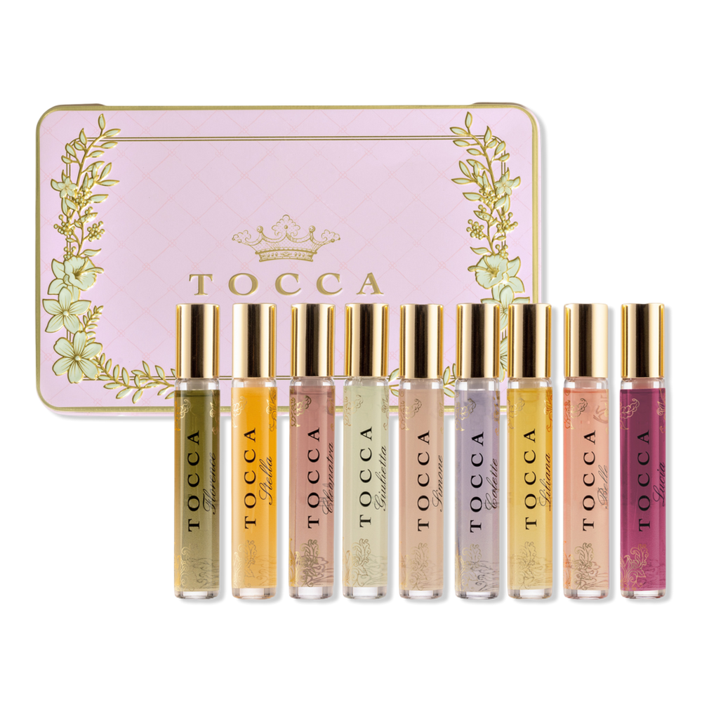 LUXURY FRAGRANCE WARDROBE EXCLUSIVE. Features: Plunge deep into olfactory adventure with the Luxury Fragrance Wardrobe, featuring nine classic scents, each with her own distinct character.. The 0.15 oz spray vials are perfect for travel, to bring along in your handbag, or to wear on rotation for a daily dose of indulgence. The Eau de Parfums come in a precious TOCCA tin. Endlessly covetable, incredibly giftable.. Contains - 6 x 0.15 oz spray vials. Florence: Sophisticated, Romantic, Timeless. Stella: Flirty, Sensual, Spontaneous. Cleopatra: Powerful, Seductive, Exotic. Giulietta: Feminine, Delicate, Refreshing. Simone: Breezy, Sparkling, Radiant. Liliana: Sparkling, Crisp, Vivacious. Belle: Adventurous, Joyful, Optimistic. Lucia: Luminous, Captivating, Soulful. Key Notes: Florence: Bergamot, Pear, Gardenia. Cleopatra: Grapefruit, Jasmine, Vanilla Musk. Stella: Italian Blood Orange, Freesia, Spicy Lily. Giulietta: Green Apple, Pink Tulips. Simone: Watermelon, Ylang Ylang, Frangipani. Colette: Bergamot, Sandalwood, Pink Peppercorn. Liliana: Neroli, Watery Peach, Muguet. Belle: Italian Bergamot, Petit Grain, Freesia. Lucia: Italian Lemon, Fig, Vetiver. Includes: Florence (0.15 oz). Cleopatra (0.15 oz). Stella (0.15 oz). Giulietta (0.15 oz). Simone (0.15 oz). Colette (0.15 oz). Liliana (0.15 oz). Belle (0.15 oz). Lucia (0.15 oz).
