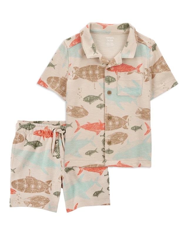 Toddler 2-Piece Sea Print Button-Down Shirt & Pull-On Shorts Set