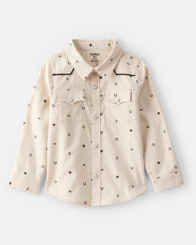 Toddler Boy Western Print Cotton Long-Sleeve Button-Down Shirt - Ivory