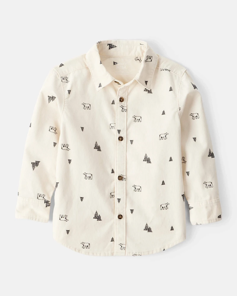 Toddler Boy Winter Print Corduroy Long-Sleeve Button-Down Shirt - IvoryToddler Boy Winter Print Corduroy Long-Sleeve Button-Down Shirt - Ivory