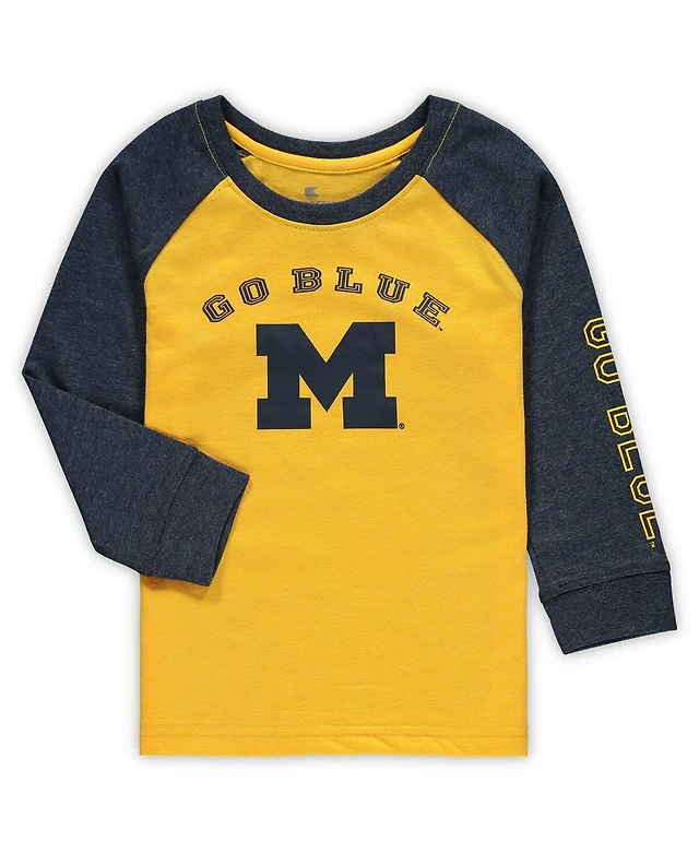 Toddler Boys and Girls Colosseum Heathered Maize Michigan Wolverines Long Sleeve Raglan T-shirt