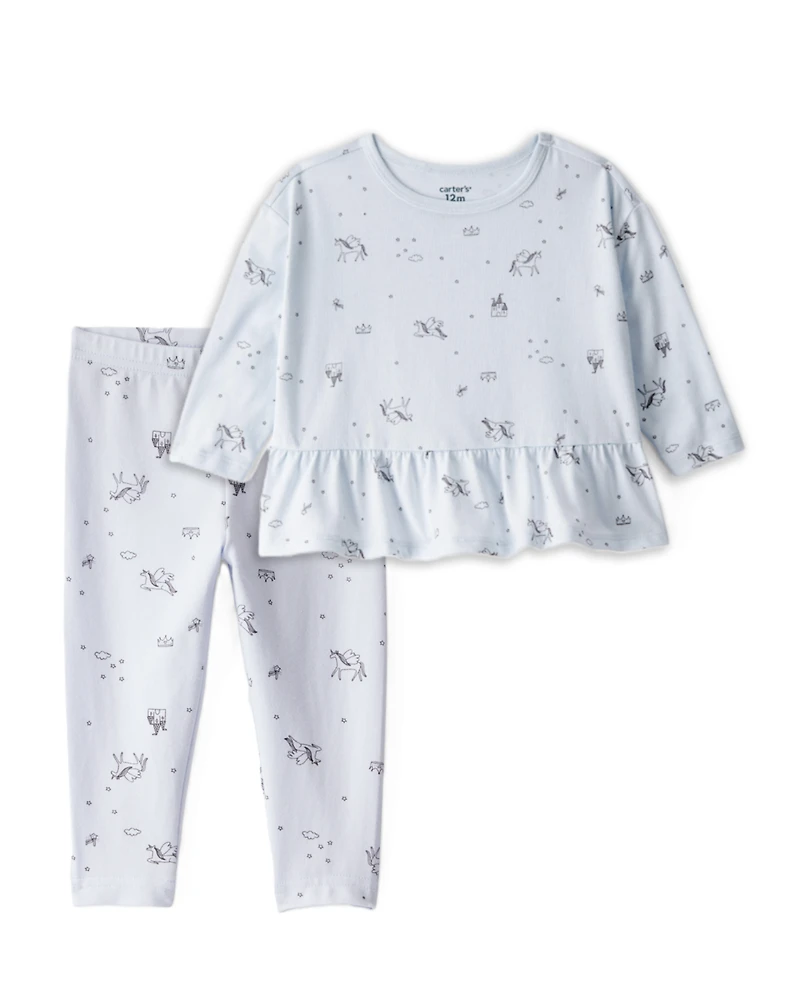 Toddler Girl 2-Piece Unicorn Top & Cotton Leggings Set - Blue