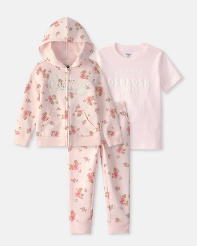 Toddler Girl 3-Piece Floral OshKosh Logo Layering Set - Pink