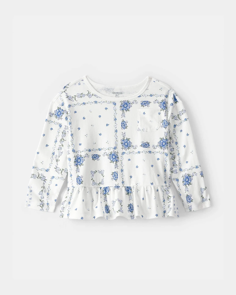 Toddler Girl Bandana Long-Sleeve Peplum Top - Blue/Ivory in Bloomington, MN