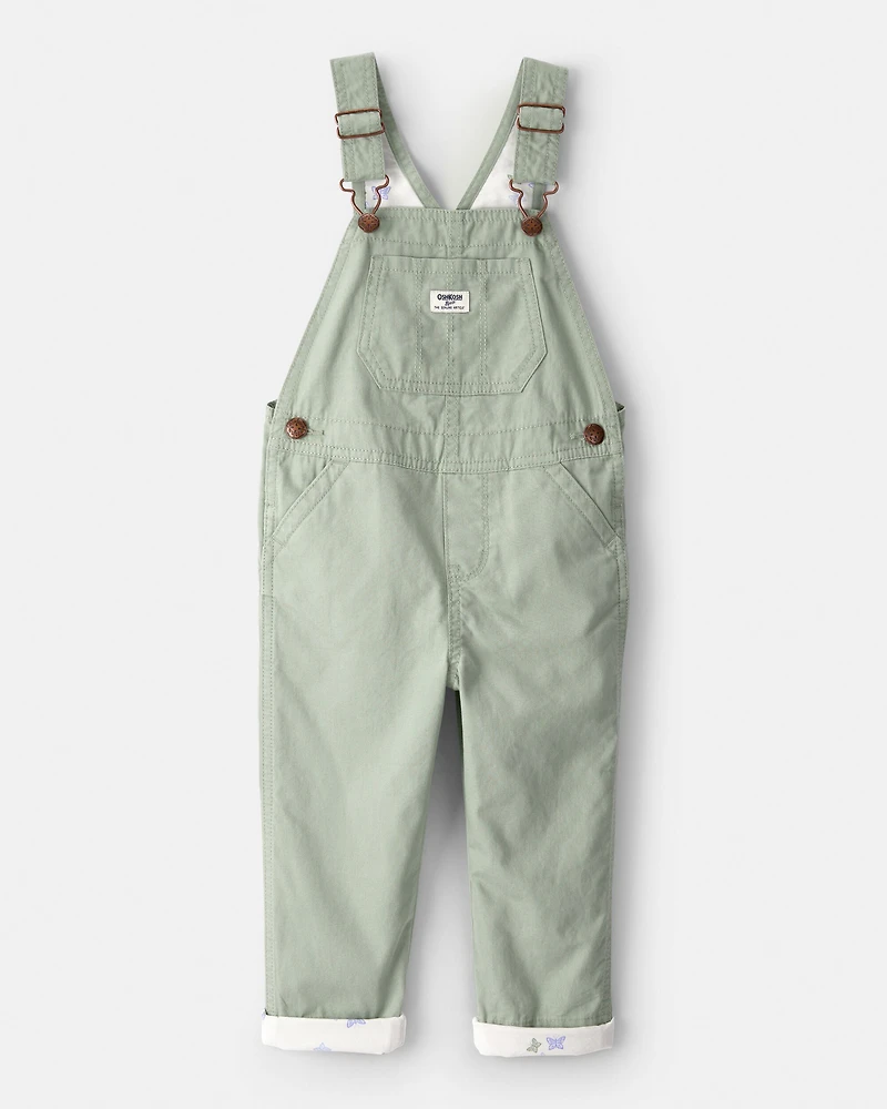Toddler Girl Butterfly-Lined Canvas Overalls - Green