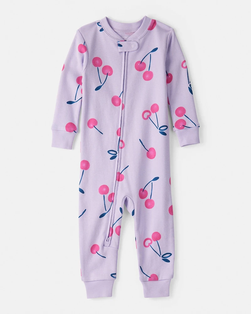 Toddler Girl Cherry 100% Cotton Snug Fit 1-Piece Pajamas - Purple