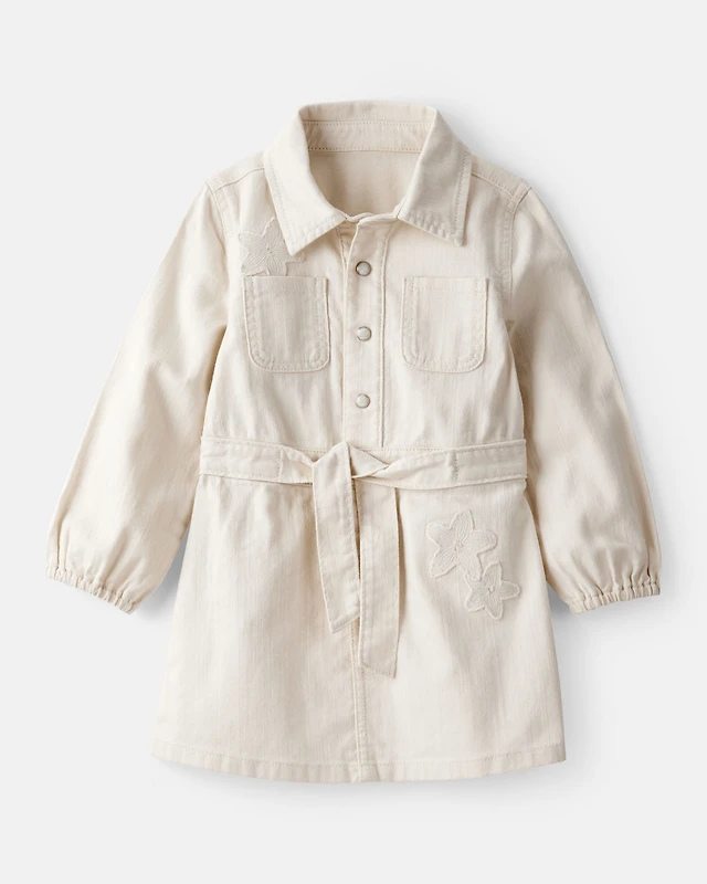 Toddler Girl Embroidered Cotton Long-Sleeve Dress - White
