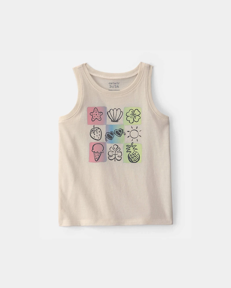 Toddler Girl Summer Icon Graphic Tank - Ivory in Bloomington, MN