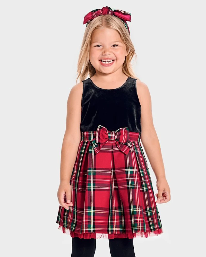 Toddler Girls Matching Family Plaid Velour Fit And Flare Dress