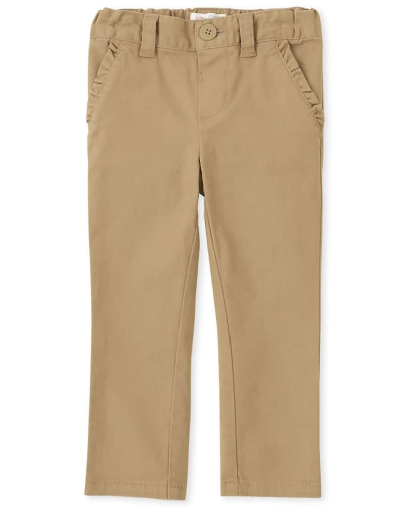 Toddler Girls Uniform Ruffle Stretch Skinny Chino Pants in Bloomington, MN