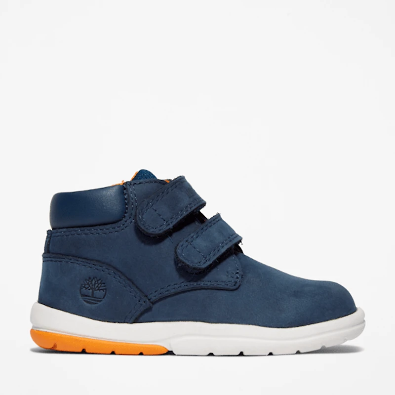 Help your toddler discover the trails with the Toddler Toddle Tracks Boot made with Premium Timberland® Leather, ReBOTL™ fabric lining containing at least 50% recycled PET plastic, and a heavy-duty EVA footbed. Your little hiker will stay in remarkable comfort as the OrthoLite® super soft foam insoles help provide long-term cushioning. A "Does it Fit?" sockliner makes this shoe as functional as it is stylish. The seam-sealed construction helps keep your little one's feet dry—no matter what adventures come their way. Timberland® supports responsible manufacturing of leather via the Leather Working Group.