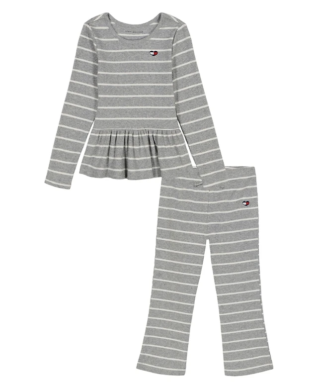Tommy Hilfiger Girls 4-6X Crewneck Top and Flared Leg Pants, 2-Piece Set
