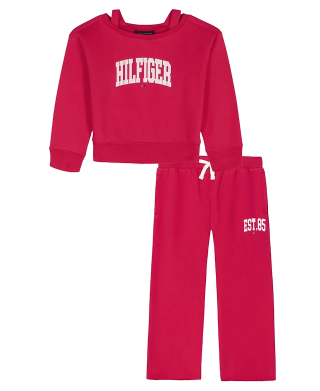 Tommy Hilfiger Girls Toddler 2T-4T 2-Piece Oversized Sweatshirt and Wide-Leg Pants Set