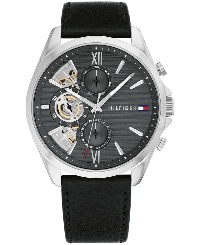 Tommy Hilfiger Men's Multifunction Black Leather Watch 44mm