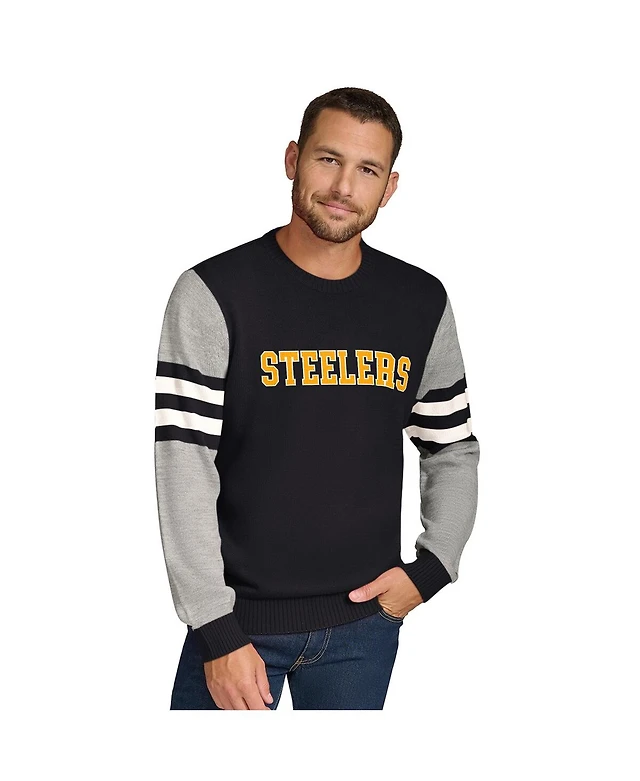 Tommy Hilfiger Men's Black/Heather Gray Pittsburgh Steelers Acrylic Crewneck Pullover Sweatshirt