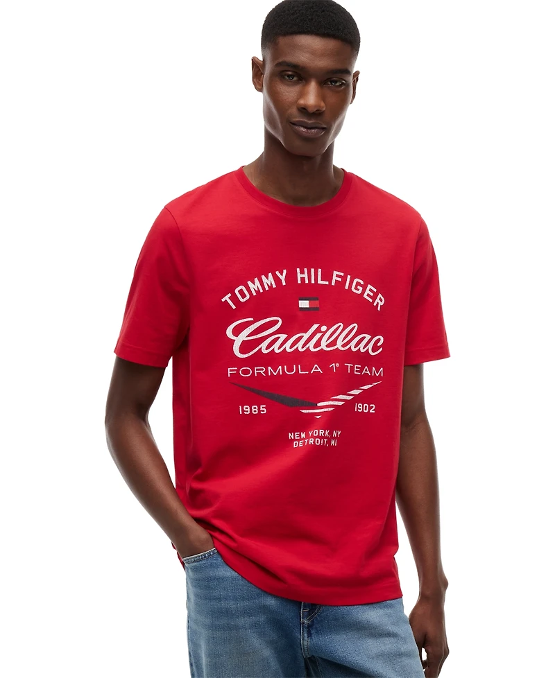 Made for easy, everyday wear, this Tommy Hilfiger T-shirt is crafted from soft cotton for a comfortable fit. The crewneck, short sleeves, and the Cadillac F1 Team graphic print give it a bold, sporty edge.