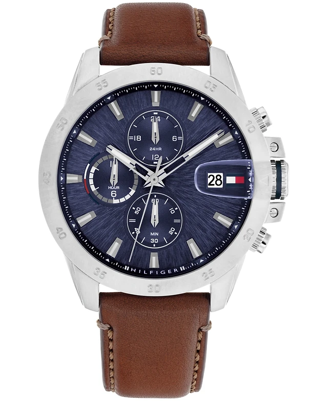 Tommy Hilfiger Men's Brown Leather Strap Watch 44mm