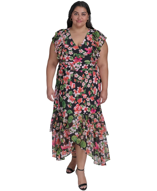 Tommy Hilfiger Plus Size Dotty Hibiscus Flutter-Sleeve Dress