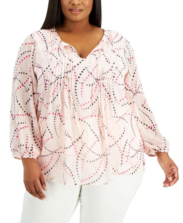 Tommy Hilfiger Plus Size Printed Pintucked Top