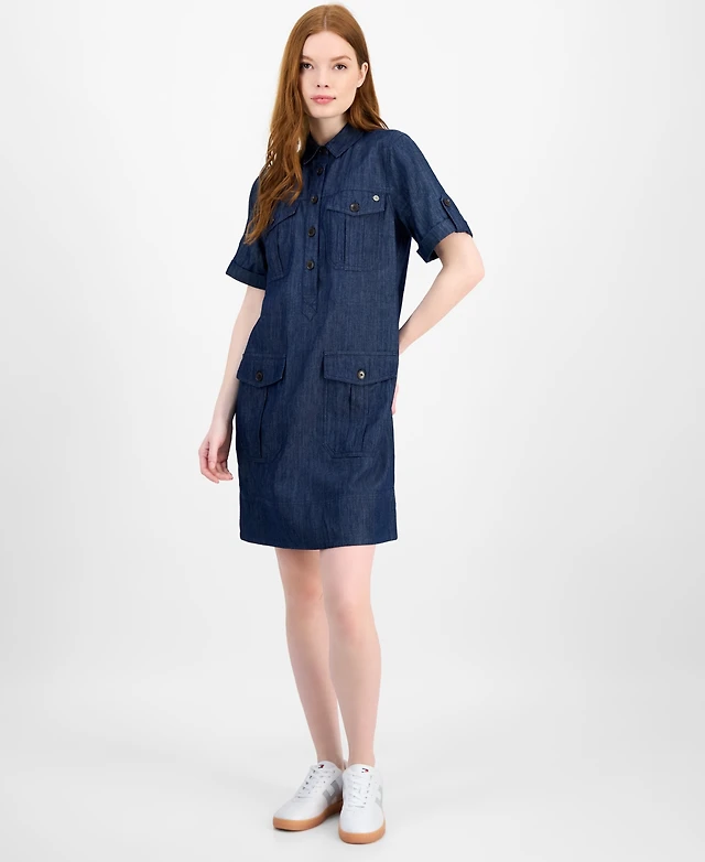 Tommy Hilfiger Women's Chambray Utility Popover Dress