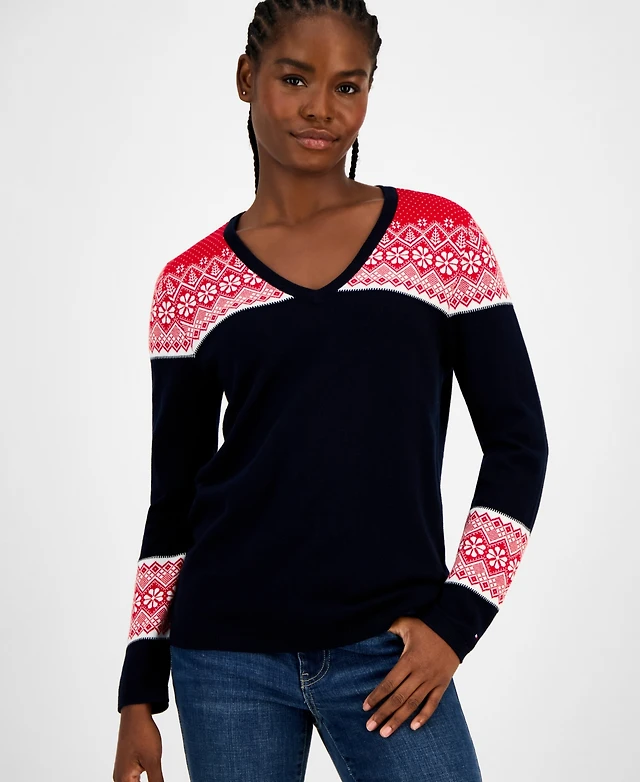 Tommy Hilfiger Women's Cotton Fair Isle V-Neck Sweater