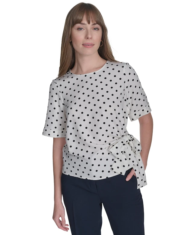 Tommy Hilfiger Women's Dot-Print Tie-Front Blouse