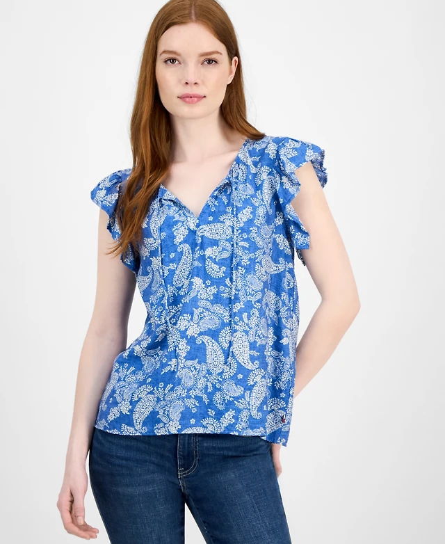 Tommy Hilfiger Women's Printed Ruffled Sleeveless Top