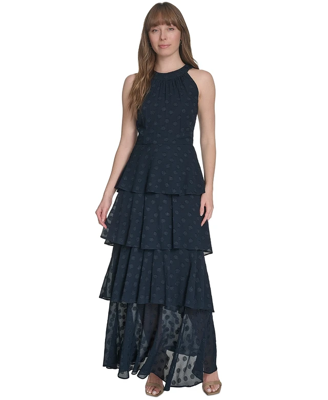 Tommy Hilfiger Women's Jacquard Halter-Neck Sleeveless Tiered Dress