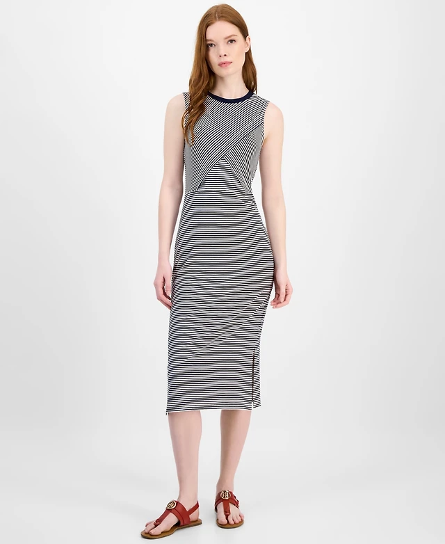Tommy Hilfiger Women's Striped Crossover Midi Dress