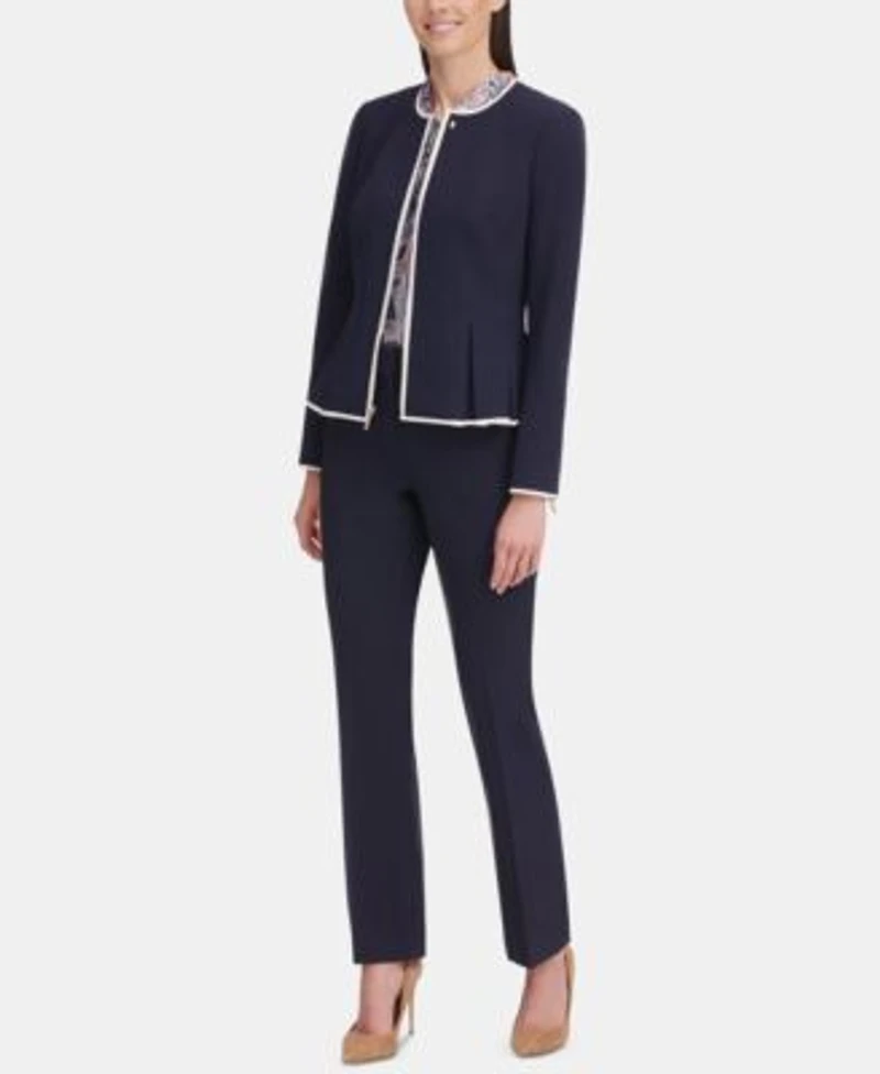 Tommy Hilfiger Womens Zip Front Peplum Jacket Sutton Boot Leg Trousers