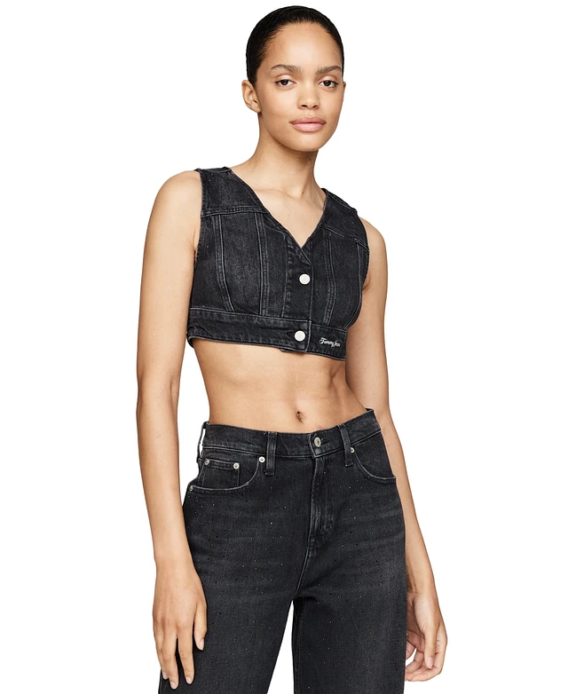 Tommy Jeans Women's Rhinestone Cropped Denim Vest