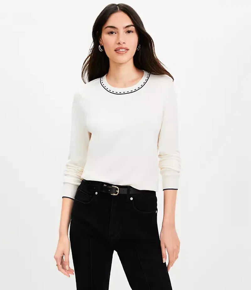 With chic contrast stitching and tipping for the coolest finish, this super soft knit is a total intrigue. Crew neck Long sleeves, Bullet1: 23 1/2"long, Imported:, Fit: Slim streamlined to fit close the body, Length: Abbreviated - hits at natural waist, Fabrication: 68% Rayon 32 Polyester, Garment Care: Machine Washable Loft Topstitched Neck Sweater Size XS Whisper White Women's by Loft Size Regular - XS Whisper White Women's Polyester / Poly, Blend Crew Neck Long Sleeve Pullover Sweaters Wear To Work 68% Rayon 32% Polyester Machine Washable Best Fall Sweaters